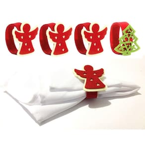 04 Unidades Anel Porta Guardanapo Tecido Feltro Anjo Vermelho com Árvore Pinheiro Verde - Magizi