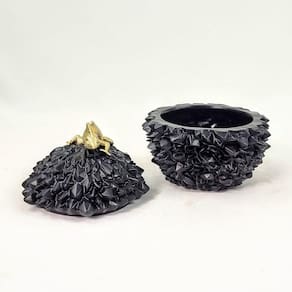 Design Elegante e Funcional: Potiche preto com um camaleão dourado no topo, destacando-se pelo contraste e charme. Material de Alta Qualidade: Feito com materiais que garantem durabilidade e um acabamento refinado. Medidas e Peso: Altura 13cm, Largura 11cm, Profundidade 11cm, Peso 560g
