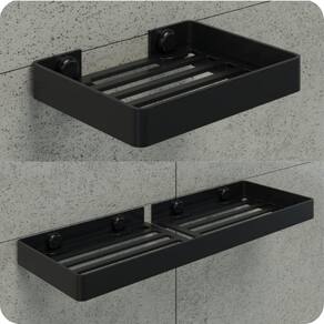 O Porta Shampoo e Sabonete tem um design clean e sofisticado, produzido em barra chata de alumínio maciço, com acabamento em pintura eletrostática epóxi preto fosco garantindo maior durabilidade e resistência, não havendo problemas com ferrugem.