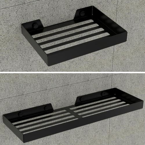 O Porta Shampoo e Sabonete tem um design clean e sofisticado, produzido em barra chata de alumínio maciço, com acabamento em pintura eletrostática epóxi preto fosco garantindo maior durabilidade e resistência, não havendo problemas com ferrugem.