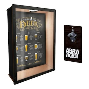 Abridor de Garrafas Parede Chega de ficar procurando o abridor de cerveja toda hora Com o Abridor de Garrafas de Parede sua Happy Hour está mais prática, ele auxilia na abertura da sua cerveja preferida e já possui suporte para depósito das tampinhas Confeccionada em MDF, a peça é resistente e usada também como decoração.