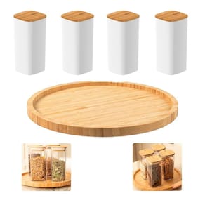 Kit Porta Temperos Giratório Bambu 4 Potes Herméticos 340Ml