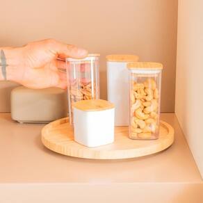 01 Organizador Giratório Keep Bambu + 04 Potes Herméticos Keep 340ml