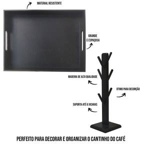 Kit porta xícaras bandeja café 6 pinos grande madeira mdf Bandeja: