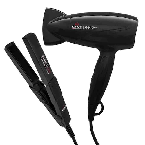 O secador Eolic Travel é a ferramenta ideal para viagens, pois é bivolt manual, conta com grande potência (atinge 1.600W em 220V) e tecnologias de ponta: Tourmaline Ion, que emite íons negativos e ondas infravermelhas, tratando os fios de dentro para fora. E o melhor: o secador Eolic Travel foi projetado para ser transportado de maneira prática, sem ocupar espaço, pois é super compacto e possui cabo dobrável. A Prancha Gama Mini Ceramic Ion atinge 200°C/392°F, conta com a tecnologia nano silver que atua como um potente bactericida e fungicida, impedindo a formação de microrganismos sobre o cabelo é continua e duradoura. Também inclui a tecnologia Ceramic Ion que auxiliam mantendo o cabelo saudável, com grande emissão de íons negativos, deixando os cabelos muito mais lisos e longe do efeito frizz por muito mais tempo. Possui formato compacto, com máximo desempenho, aquecimento ultrarrápido e sua voltagem é bivolt; permitem a versatilidade que permitem levá-la a todos os lugares.