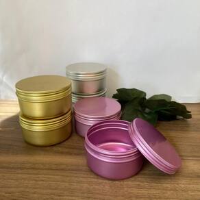 Ficha técnica: Material: alumínio de alta qualidade Capacidade: 50g Dimensões: altura de 2,5cm com um diâmetro de 7cm Cor: dourado Fechamento: tampa rosqueável para vedação segura Reciclabilidade: 100% reciclável, contribuindo para a sustentabilidade ambiental