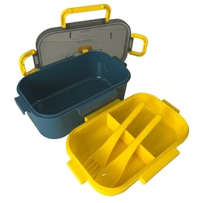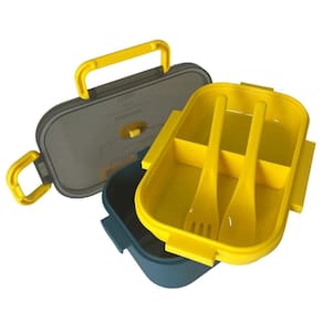 Kit Pote Mamiteira 1100ml Com Divisórias Talher E Copo Cor: Amarelo/Azul Kit Pote Mamiteira 1100ml Com Divisórias Talher E Copo