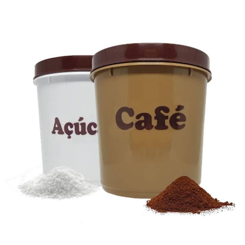 onde você guarda seu pó de café e seu açúcar hoje em alguma embalagem na geladeira isso faz com que seu cafézinho perca o sabor e crie umidade o jeito certo é conservar em potes bem lacrados e em local seco, sabia dessa então o kit de potes de café e açúcar vai te ajudar a organizar melhor sua cozinha e seus alimentos. Eles são muito prático e cabem em qualquer cantinho, com capacidade para 1 litro cada um, tem tampa estrelada com rosca, facilitando a abertura, lacrando e protegendo muito bem seus alimentos, além de terem os nomes açúcar e café estampados, facilitando a identificação na hora de pegar o pote no armário. Além de todas essas vantagens, os potes também são lindos, com acabamento lindo e vão decorar muito bem a sua cozinha e seus armários, dá até pra mandar uma foto para os amigos depois de organizar tudo e mostrar como ficou lindo