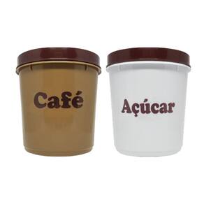 Kit pote para café e açúcar 1 l cozinha armazenamento fresco cor: marrom e branco resumo