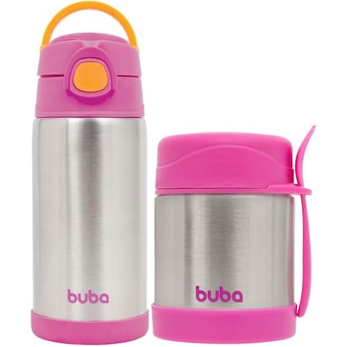O Kit Refeição Térmico Buba contém Pote Térmico com talher e Copo Térmico Parede Dupla com Canudo. Ideais para refeições fora de casa, pois ajuda a conservar a temperatura dos alimentos (quente ou fria). O Pote pode ser utilizado para armazenar papinhas, frutas e legumes. Já o copo, pode ser utilizado para água, sucos e chás. Ambos são produzidos em aço inoxidável com parede dupla, são resistentes, higiênicos e conservam a temperatura por mais de 5 horas.