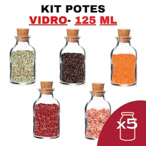 Kit potes de temperos condimentos de vidro 125ml Quantidade: 5 Atenção certifique-se de selecionar a quantidade de potes desejada no kit ao finalizar a compra.
