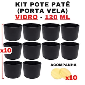 Kit potes de vidro jateado patê preto com tampa 120ml Quantidade: 10 Atenção certifique-se de selecionar a quantidade de potes desejada no kit ao finalizar a compra.