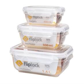 Kit Potes Fliplock Quadrado E Retangular 400Ml 800Ml 1,4L