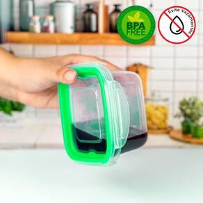 Características: Marca: Tritec Material: Polipropileno Atóxico Livre de BPA Cor: Verde Tampa: Hermética com borracha embutida Quantidade: 3 peças