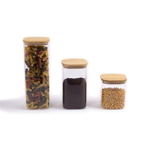 Esse é o conjunto de potes de mantimentos quadrado flat com tampa de bambu da OIKOS. Seu formato quadrado ajuda a aproveitar melhor o espaço - ele encaixa direitinho no canto do armário. Tampa flat: uma tampa de bambu retinha, fácil de limpar e que fica uma graça na cozinha ;). E não julgue pelas aparências, ele não é só um potinho bonito: com a combinação da vedação de silicone e o bambu antibacteriano, esse pote se torna um verdadeiro mestre na conservação de alimentos! E não é só de comida que vive esse pote: pisca-pisca, pregadores de roupa, decoração de Natal, nozes, flores secas, fios e o que mais você quiser guardar - isso que é versatilidade.