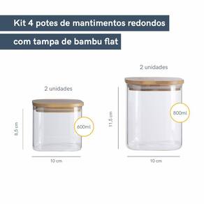 Esse conjunto contém 4 peças: 2 unidades - POTE DE MANTIMENTOS QUADRADO FLAT 600ML TAMPA BAMBU - OIKOS Comprimento: 10 cm / Largura: 10 cm / Altura: 9 cm