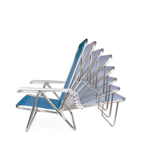 A cadeira fica completamente sentada na posição 1 e completamente deitada na posição 8, ideal para banhos de sol, além disso, seu apoio permite maior estabilidade nessa posição. Sua tela é produzida em 100% poliéster com revestimento em PVC. Super resistente, suporta até 100 Kg e vai ser a opção perfeita para seus momentos de descanso.
