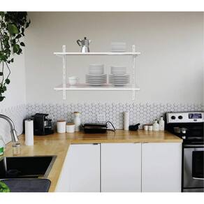 Descrição Kit completo com 2 prateleiras de 60x30x1,5 brancas em MDP e acabamento UV + 2 trilhos de 50cm + 4 suportes de trilhos de 30cm em aço brancos de altíssima resistência que garante total segurança na utilização do produto, além de design discreto e elegante permite uma fácil instalação, pois já acompanha todos os acessórios para fixação podendo ser instalado em diversos ambientes.