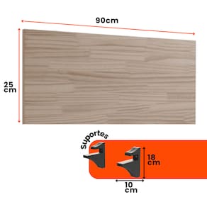 Kit Prateleira MDP 90X25 Aveiro Linha Organização PAB90X25 UV + Suporte Preto em ABS KTBS-01P - 4 Unidades