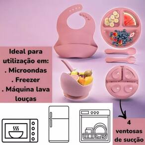 Lindo kit de silicone para bebês para ajudar na introdução alimentar do seu bebê.