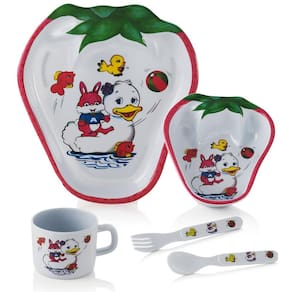 Kit Alimentação com: Prato prático e de fácil limpeza, Seguro para uso na máquina lava-louças, Desenhos e cores vibrantes estimulam a criança a comer, Prato com divisórias, Resistente contra quedas e quebras, De fácil manuseio para as crianças.