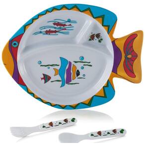 Kit Alimentação com: Prato prático e de fácil limpeza, Seguro para uso na máquina lava-louças, Desenhos e cores vibrantes estimulam a criança a comer, Prato com divisórias, Resistente contra quedas e quebras, De fácil manuseio para as crianças.