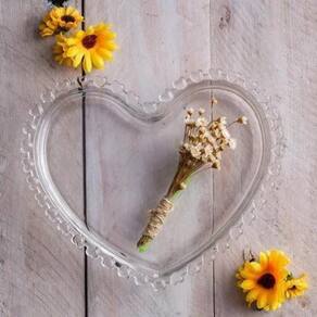 Para uma mesa muito mais charmosa, o prato e bowl para sobremesa em formato de coração compõe uma decoração delicada e harmônica.