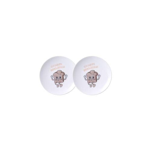 Kit Prato Sobremesa Tramontina Grooby Breakfast em Porcelana Decorada 19 cm 02 Peças