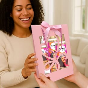 Cuidados completos para cabelos cacheados e crespos, com direito a um mimo especial e uma embalagem encantadora para transformar o cuidado em presente!