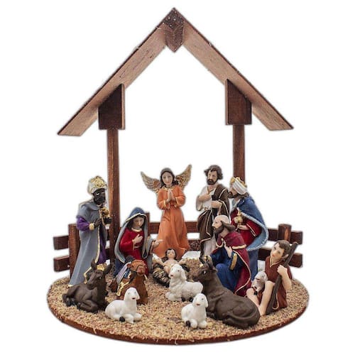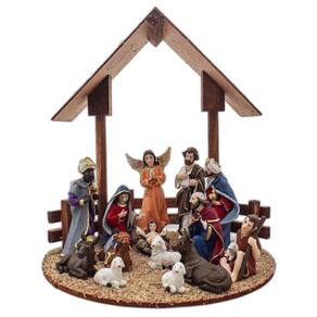 Kit Presépio 2 Resina 14 Peças 15 cm com Casa Rústica Madeira 33 cm Presépio, do latim Praesaepe, significa estrebaria ou curral. É um gesto que ajuda a preparar a celebração do nascimento de Jesus. Geralmente é formado pelo menino Jesus, Maria, José, os Reis Magos, o anjo, os pastores e os animais.- Presépio 2 Resina 14 Peças 15 cm MNFGCCNBU - casa Rústica Presépio Madeira 33 cm BEV3EQRQS As medidas e o material podem variar por se tratar de um produto artesanal. Marca: Amém Decoração Religiosa