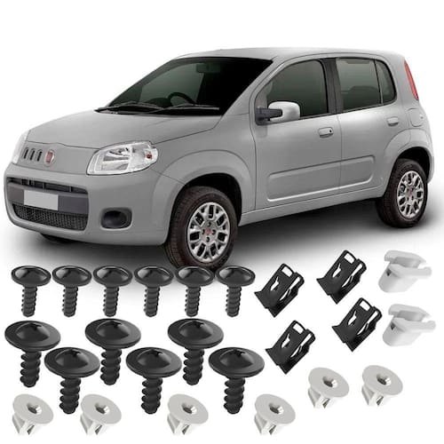 Especificação Técnica do Kit: Kit com 24 Peças Para Fixação do Para-barro Dianteiro Este Kit Permite a Fixação de Apenas 01 (UM) Para-barro Grampos e Porca Fabricados em Plástico de Alta Resistência Parafusos e Porcas Rápida Fabricados em Metal de Alta Resistência Alta Durabilidade Fácil Instalação Ótimo Acabamento Encaixe Perfeito O Para-barro não Acompanha o Kit de Fixação!