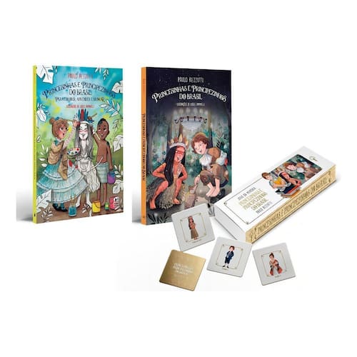 Princesinhas e Principezinhos do Brasil com Jogo da memória PRINCESINHAS E PRINCIPEZINHOS DO BRASIL PARA COLORIR Nesta edição especial de Princesinhas e principezinhos do Brasil, as histórias das nossas princesas e dos nossos príncipes ficaram ainda mais divertidas! Lendo, colorindo, recortando e brincando, você vai descobrir a diferença entre um papagaio africano e um papagaio brasileiro e como um rinoceronte influenciou um rei a criar calçadas de pedras brancas e pretas. Vai conhecer as várias peças de roupa que as princesas eram obrigadas a usar (e ajudar Carlota Joaquina a se!) e os mitos do nosso folclore. Então pegue tesoura, giz de cera, lápis e canetinhas coloridas e venha participar deste livro! Você sabia que o Brasil também tem princesas e príncipes? Tem sim, e elas e eles, um dia, foram crianças iguaizinhas a você: uns não gostavam de estudar, outros adoravam; Tinha um que morria de medo de trovão, já outro não tinha medo de nada. Uns nasceram em palácios, bem longe do Brasil. Outros nasceram aqui mesmo, até no meio das nossas florestas e os animais foram seus companheiros de aventura. Alguns dos nossos príncipes e princesas nasceram lá na África e foram obrigados a vir para cá. Neste livro, você vai aprender um pouquinho sobre eles e também vai poder se divertir, colorindo como ilustrações que ainda estão em preto e branco – preste bastante atenção para não deixar nenhuma! –, recortando e montando os bonequinhos de papel de alguns personagens e suas roupinhas. Espero que você se divida e que esse livro seja apenas o início da sua aventura pela leitura e pela história! PRINCESINHAS E PRINCIPEZINHOS DO BRASIL Que Paulo Rezzutti gosta de contar histórias do Brasil, todo mundo já sabe, mas agora ele se dirige ao público infantil-juvenil, revelando a todos nós que as Princesinhas e os Principezinhos da história brasileira foram crianças muito parecidas conosco do que podíamos imaginar. Quem já não se surpreendeu e se divertiu ao descobrir a foto da mãe, do pai ou dos avós quando? Melhor ainda quando ouvimos como histórias das suas infâncias, tomadas e travessuras aventuras. Não foi diferente com D. João VI, D. Leopoldina, Zumbi ou Paraguaçu. Todas as nossas histórias princesas e príncipes, tanto aqueles de origem europeia, quanto os africanos e seus descendentes e os indígenas foram crianças, aprontaram, se divertiram, tiveram medos e têm muita para contar. O nosso autor ainda irá revelar que a vida da realidade não era nada fácil para os seus pequenos nobres, continuando, nesse novo livro, o seu trabalho de recuperação e divulgação da História do Brasil. Paulo Rezzutti reúne milhares de seguidores ávidos por conhecerem o nosso, num exercício fundamental de compreensão do nosso presente. Não por acaso ele recebeu, em 2021, o Prêmio Descobertas do Ano Aventuras na História, na categoria Canal Favorito no Youtube. O que ele não poderia imaginar era a legião de “pequenos fãs” que começaria a assistir aos seus programas. Claro que eles querem mesmo é saber da vida das princesas e dos príncipes, ícones que ainda muitos povoam as nossas cabeças. Atendendo a pedidos e com a bela da pesquisa ilustrada Gisele Daminelli, Paulo lança o seu primeiro livro com personagens infantis e: “claro que há muito do meu texto na fala dos pequenos nobres, mas a alerta história está lá, fruto de muita coisa sobre a personalidade, a rotina e a vida das nossas princesinhas e principezinhos”. Jogo da memória Princesinhas e Principezinhos do Brasil Além de ler o livro "Princesinhas e Principezinhos do Brasil", de Paulo Rezzutti, você e seus amigos podem continuar a aprender sobre a história do Brasil se divertindo, com o Jogo da Memória. São 42 cartas com os personagens do livro.