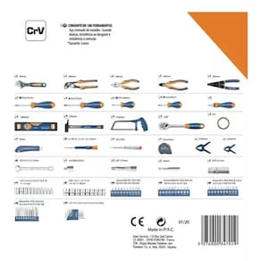 Excelente Kit para você ter em sua casa e no local de trabalho. Ideal para instalações, aperto e desaperto de parafusos, montagens de peças, móveis e etc.Produto Jogo de FerramentasMaterial MetalTipo de Material Aço Cromo-VanádioMarca DexterUso Indicado dos Jogos e Kits MultiusoQuantidade de Peças 108 peça(s)Uso Indicado MultiusoProduto Acompanha Embalagem SimTipo de Embalagem MaletaAltura da Embalagem 35,8 cmLargura da Embalagem 50,8 cmProfundidade da Embalagem 7,4 cmPeso do Produto na Embalagem 6,076 KgConteúdo da Embalagem O Jogo 108 Peças Dexter acompanha 1 Chave Inglesa 6" (150mm), 1 Alicate Bomba D'água 8" (200mm), 1 Alicate Universal 6.1/2" (160mm), 1 Alicate Descascador de Fios e Cabos 8.1/5" (205mm), 1 Chave Phillips PH2x75mm, 1 Chave de Fenda SL5x75mm, 1 Chave Phillips PH1x38mm, 1 Chave de Fenda SL6x38mm, 1 Punho Catraca, 1 Nível Alumínio 300mm 2 Bolhas com pontas emborrachadas, 1 Martelo 25mm 300g com Cabo de Fibra, 1 Arco de Serra 6" (150mm), 1 Chave Catraca Cabo Bimaterial, 1 Fita Isolante 5m, 1 Estilete 18mm, 5 Chaves de Precisão(PH0, PH1,SL1mm,SL1.6mm,SL2mm), 1 Chave Teste 100-250V, 1 Trena 3m, 2 Grampos Multiuso 90mm, 2 Grampos Multiusos 64mm, 6 Chaves Combinadas (8, 9, 10, 11, 12 e 13mm), 1 Adaptador de Soquete 1/4" (Macho) para 3/8" (Fêmea), 1 Adaptador de Soquete 3/8" 75mm, 1 Suporte para Bit 60mm, 1 Soquete Longo 3/8" 21mm, 11 Soquetes 1/4" (4, 4.5, 5, 5.5, 6, 7, 8, 9, 10, 11, 12mm), 9 Soquetes 3/8" (10, 11, 12, 13, 14, 15, 16, 17, 18mm), 1 Jogo com 10 Bits 25mm (PZ0, PZ1, PZ2, PZ3, H3, H4, T20, T25, T30, T40), 1 Jogo com 10 Bits 25mm (PH0, PH1, PH2, PH3, H5, H6, SL3, SL4, SL5.5, SL6), 1 Jogo com 10 Bits 25mm (PH1, PH2, PH3, SL3, SL4, SL5.5, SL7, T20, T25, T30), 1 Jogo com 10 Bits 50mm (PH1, PH2, PH3, SL4, SL5, SL6, T10, T15, T20, AD) e 1 Jogo com 11 Chaves Allen (1.27, 1.5, 2, 2.5, 3, 3.5, 4, 4.5, 5, 5.5, 6mm).Dimensão da Embalagem 358x508x74 mmPossui Fecho SimMaterial do Fecho PlásticoAcompanha Maleta SimMaterial da Maleta Plástico