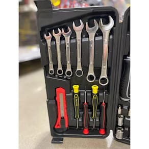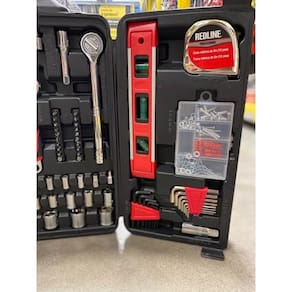 Ferramentas manuais são essenciais para ter sempre à mão, em casa ou no carro. Compactos e leves, esses acessórios fazem parte do kit básico de reparos mecânicos e residenciais, ajudando em qualquer emergência. Entre os principais itens estão chaves de fenda, allen ou de boca; martelos; marretas, serrotes; estiletes; alicates de corte ou de pressão e soquetes. Também são muito úteis: talhadeiras, pás, formões e canivetes.MarcaRedlineInclusoMaleta plástica e 250 peças: 1 martelo remove pregos de 13 oz, 16 chaves allen (hexagonais), 29 chaves de dado, 22 pontas de 25 mm com 2 racks, 6 chaves ponta coroa (8, 10, 11, 13, 14, 15 mm, 1 cigarra (controle) de 10 mm (3/8 polegadas), 1 blow mold case.UsoHobby para diversos tipos de trabalhos de reparação no lar.Comprimento da Embalagem9 cmLargura da Embalagem34 cmAltura da Embalagem37 cmPeso Líquido4,680 kgMaterialMetalGarantia1200 meses