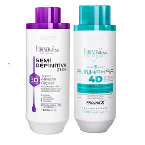 AlinharHair 4D Realinhamento Capilar Forever Liss 1000g com nano.reestruturação, promove máxima redução de volume e alinhamento completo dos fios. Ainda mais poderosa com ativos naturais como óleo de coco, óleo de Argan e Manteiga de Karité e Tecnologia 4D que proporciona remodelagem dos fios para um alinhamento capilar completo e duradouro, reforço da fibra capilar e disciplina aos fios, dando brilho, maciez e movimento incríveis aos cabelos. Age na reconstrução da fibra capilar, através da ação escova e calor da prancha.