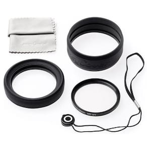 O Kit de Proteção para Lente 52mm EasyCover com Filtro MC UV possui material flexível de silicone de alta qualidade que protege a lente contra choques e arranhões, é uma solução prática para utilização na fotografia do dia a dia.Este kit Proteção para Lente da EasyCover foi projetado para proteger Lentes Fotográficas de 52mm contra impactos e arranhões. O conjunto inclui um protetor para a parte frontal da lente, um protetor para a parte central da lente, um cordão com um clipe para uma capa, um pano de limpeza e um Filtro de Lente MCUV.Os filtros MC UV são multi-revestidos para reduzir efeito de alargamento, fantasmas e reflexos sobre a superfície do filtro. Como resultado, é possível uma maior transmissão de luz de aproximadamente 96%, proporcionando contraste adicional e alta fidelidade de cores.Além de segurança, o anel de silicone central torna o controle de zoom da sua lente mais fácil de manusear. O anel frontal protege as bordas e frente sua lente de arranhões e amassados quando você está trabalhando ativamente com a câmera. O filtro de Lente de 52mm revestido de várias camadas protege o vidro da sua lente contra arranhões e impressões digitais e remove a névoa e manchas azuis das fotos.Principais Características: Anéis de silicone macios e flexíveis Protetor de Lente contra colisões e arranhões Absorve os impactos na frente e nas laterais da lente filtro MC UV Multi Camada e Pano de Limpeza Inclusos Proteção para Lentes com Rosca Frontal de 52mmNão acompanha Câmera e Lente, imagens ilustrativas.Obs: o tamanho da rosca da frontal da lente de sua câmera será marcado geralmente na parte frontal da lente ou impresso embaixo da tampa da lente. Este número é sempre precedido por um símbolo diâmetro .