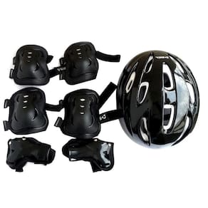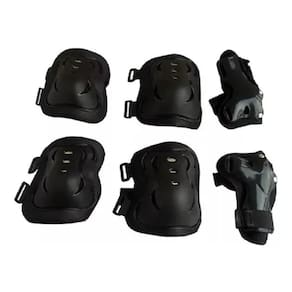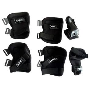 - Marca: Belfix - Modelo: Kit de proteção radical - Tamanho: M - Cor: Preto - Material: EPS / Isopor e Espuma (Capacete) Poliéster / EVA / Elástico / Polietileno (Joelheira, Cotoveleira e Protetor de punho)