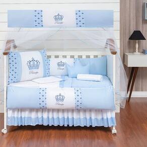 Kit Protetor Berço 11 Peças Menino Coroa Azul