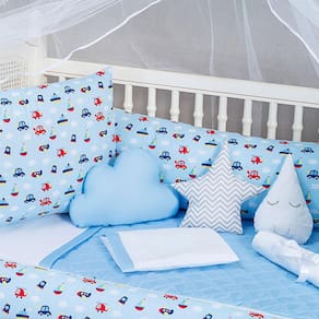 Kit Protetor Berço Carrinho Azul Menino 2 Laterais 8 Peças