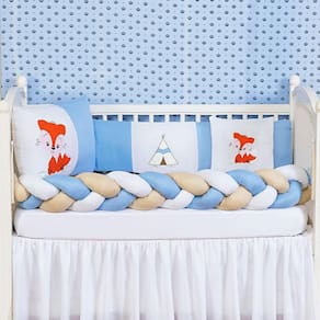 Kit berço 6 peças- o melhor da categoria1 cabeceira------------------0.65x0.40 mts1 lateral -----------------------1.25x0.25mts1 trança --------------------1.25x0.12 mts1 almofada -----------------0x25x0.25 mts1 fronha ---------------------0.28x0.38 mts 1 lençol com elástico inteiro---- 130cm x 70cm x 15cmDescrição das pecas :Tecido: 70% poliéster/ 30% algodãoEnchimento 100% poliésterMosqueteiro 100% poliamidaInformações importantes:O produto já vai pronto para o uso, com o enchimento já incluso.Acompanha as peças conforme a descrição, não esta incluso o berçoA cabeceira e lateral do kit possuem zíper para retirar o enchimento, facilitando assim uma possível lavagem do produto.Trança deve ser lavada a secoA saia não acompanha Marca: L2m