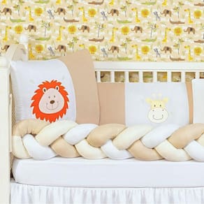 Este produto foi desenvolvido pensando no máximo conforto e bem estar do seu bebê. Por isso, ele é fabricado com materiais de alta qualidade. Tudo para garantir a segurança dos pequenos e tranquilidade para os pais.Características:- Material de alta qualidade- Produzido pensando na segurança do bebê- Produto regularizado pelas agências governamentais responsáveisEspecificações TécnicasProduto: Kit Protetor Berço Padrão Americano Selva Safari Leão 6 PçsMarca: L2MModelo: Kit para berço Nacional e AmericanoCor: CaquiGênero: Unissex Material:Tecido: 70% poliéster/ 30% algodãoEnchimento 100% poliésterMosqueteiro 100% poliamidaMedidas:1 cabeceira------------------0.65x0.40 mts1 lateral -----------------------1.25x0.25mts1 trança --------------------1.25x0.12 mts1 almofada -----------------0x25x0.25 mts1 fronha ---------------------0.28x0.38 mts 1 lençol com elástico inteiro---- 130cm x 70cm x 15cmInformações importantes:O produto já vai pronto para o uso, com o enchimento já incluso.Acompanha as peças conforme a descrição, não esta incluso o berçoA cabeceira e lateral do kit possuem zíper para retirar o enchimento, facilitando assim uma possível lavagem do produto.Trança deve ser lavada a secoA saia não acompanha Marca: L2m