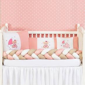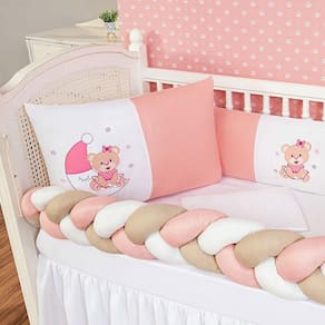 Este produto foi desenvolvido pensando no máximo conforto e bem estar do seu bebê. Por isso, ele é fabricado com materiais de alta qualidade. Tudo para garantir a segurança dos pequenos e tranquilidade para os pais.Características:- Material de alta qualidade- Produzido pensando na segurança do bebêEspecificações TécnicasProduto: Kit Protetor Berço Padrão Americano Ursinha Lua Rosê 6 PçsMarca: L2MModelo: Kit para berço Nacional e AmericanoCor: RosêGênero: FemininoMaterial:Tecido: 70% poliéster/ 30% algodãoEnchimento 100% poliésterMosqueteiro 100% poliamidaMedidas:1 cabeceira------------------0.65x0.40 mts1 lateral -----------------------1.25x0.25mts1 trança --------------------1.25x0.12 mts1 almofada -----------------0x25x0.25 mts1 fronha ---------------------0.28x0.38 mts 1 lençol com elástico inteiro---- 130cm x 70cm x 15cmInformações importantes:O produto já vai pronto para o uso, com o enchimento já incluso.Acompanha as peças conforme a descrição, não esta incluso o berçoA cabeceira e lateral do kit possuem zíper para retirar o enchimento, facilitando assim uma possível lavagem do produto.Trança deve ser lavada a secoA saia não acompanha Marca: L2m