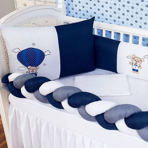 Kit berço 6 peças- o melhor da categoria1 cabeceira------------------0.65x0.40 mts1 lateral -----------------------1.25x0.25mts1 trança --------------------1.25x0.12 mts1 almofada -----------------0x25x0.25 mts1 fronha ---------------------0.28x0.38 mts 1 lençol com elástico inteiro---- 130cm x 70cm x 15cmDescrição das pecas :Tecido: 70% poliéster/ 30% algodãoEnchimento 100% poliésterMosqueteiro 100% poliamidaInformações importantes:O produto já vai pronto para o uso, com o enchimento já incluso.Acompanha as peças conforme a descrição, não esta incluso o berçoA cabeceira e lateral do kit possuem zíper para retirar o enchimento, facilitando assim uma possível lavagem do produto.Trança deve ser lavada a secoA saia não acompanha Marca: L2m