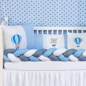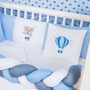 Kit Protetor Berço Padrão Americano Ursinho Balão Azul 6 Pçs