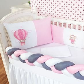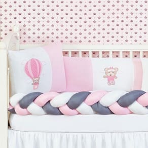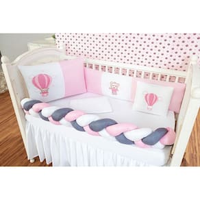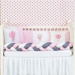 Informações importantes: O produto já vai pronto para o uso, com o enchimento já incluso. Acompanha as peças conforme a descrição, não esta incluso o berço A cabeceira e lateral do kit possuem zíper para retirar o enchimento, facilitando assim uma possível lavagem do produto. Trança deve ser lavada a seco A saia não acompanha Marca: L2m Ean: 7890201038949