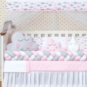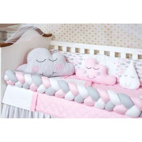 Informações Importantes:O produto já vai pronto para o uso, com o enchimento já incluso.Acompanha as peças conforme a descrição, não esta incluso o BerçoA cabeceira e as laterais do kit possuem zíper para retirar o enchimento, facilitando assim uma possível lavagem do produto. as cabeceiras em formato de nuvem ou coroa não possuem zíper TOTAL 11 PEÇAS 1 Cabeceira 0.57X0.37 mts1 Lateral 1.25X0.25mts1 Trança 1.25X0.12 mts 1 Lençol de cima 1.30X0.90 mts 100% ALGODÃO1 Fronha 0.28x0.38 mts 100% ALGODÃO1 Bando do mosqueteiro 1.40x0.20 mts1 Mosqueteiro 4.50x1.50 mts1 Edredom 1.30X0.75 mts1 Almofada nuvem 0.40x0.20 mts1 Almofada Gota 0,30 x 0,22 mts1 SAIA BOX 1,30 x 0,70 x 0,30 mtsObservações:- Produto com excelente qualidade de tecido e acabamento.- Possui zíper para remoção dos enchimentos.DESCRIÇÃO DAS PECAS :Tecido estampado: 100% AlgodãoTecido liso: 50% Algodão| 50% PoliésterLençol: 100% AlgodãoFronha: 100% AlgodãoEnchimento 100% PoliésterMosqueteiro 100% Poliamida Marca: L2m