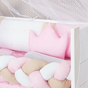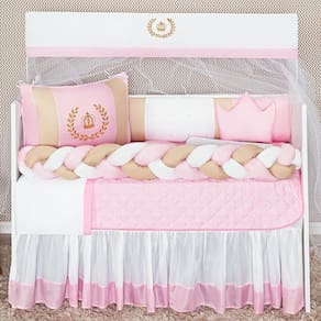 A Coleção Coroa Luxo é um clássico devolvido para o quarto de seu bebê elegante e luxuoso. Oferece todo conforto que o bebê necessita e dá um toque especial na decoração do quarto. O Kit Berço Trança acompanha 11 peças, incluindo a saia box, edredom matelado dupla face.