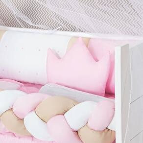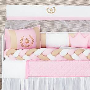 A Coleção Coroa Luxo é um clássico devolvido para o quarto de seu bebê elegante e luxuoso. Oferece todo conforto que o bebê necessita e dá um toque especial na decoração do quarto. O Kit Berço Trança acompanha 11 peças, incluindo a saia box, edredom matelado dupla face.
