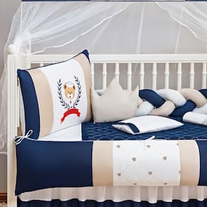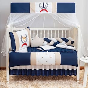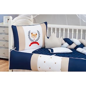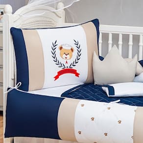 A Coleção Urso Marinheiro deixa o quarto de seu bebê a bordo de um navio. Oferece todo conforto que o bebê necessita e dá um toque romântico na decoração do quarto. O Kit Berço Trança acompanha 11 peças, incluindo a saia box, edredom matelado dupla face.