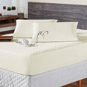 Conteúdo da embalagem - 01 protetor de colchão king: 2,03 m x 1,93 m x 40 cm - 02 porta travesseiros: 70 cm x 50 cm - 01 saia box nas medidas: 2,03 x 1,93 x 0,30cm